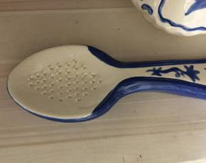 Some of the rests feature an ingenious slotted holder whereby drippings from said spoon might settle below the actual spoon, in essence creating two surfaces to later clean instead of only one. Or consider the utilitarian grater spoon rest for your garlic, cheese, or spice grating in addition to use as a spoon rest.