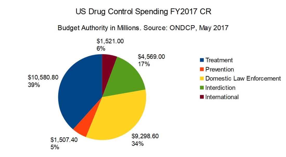 The fact is that we can’t arrest our way out of the drug problem and treatment alone is not the answer. As shown on the adjacent chart, funding for ‘prevention’ is a slim portion of the overall budget. What we need to get at is WHY people abuse drugs, and in order to make meaningful headway on that question, we must first accept the reality that drug USE is not the same as drug ABUSE. Just as a beer or two isn’t alcoholism, neither does casual smoking of marijuana or exploring LSD on a weekend adventure constitute substance abuse.