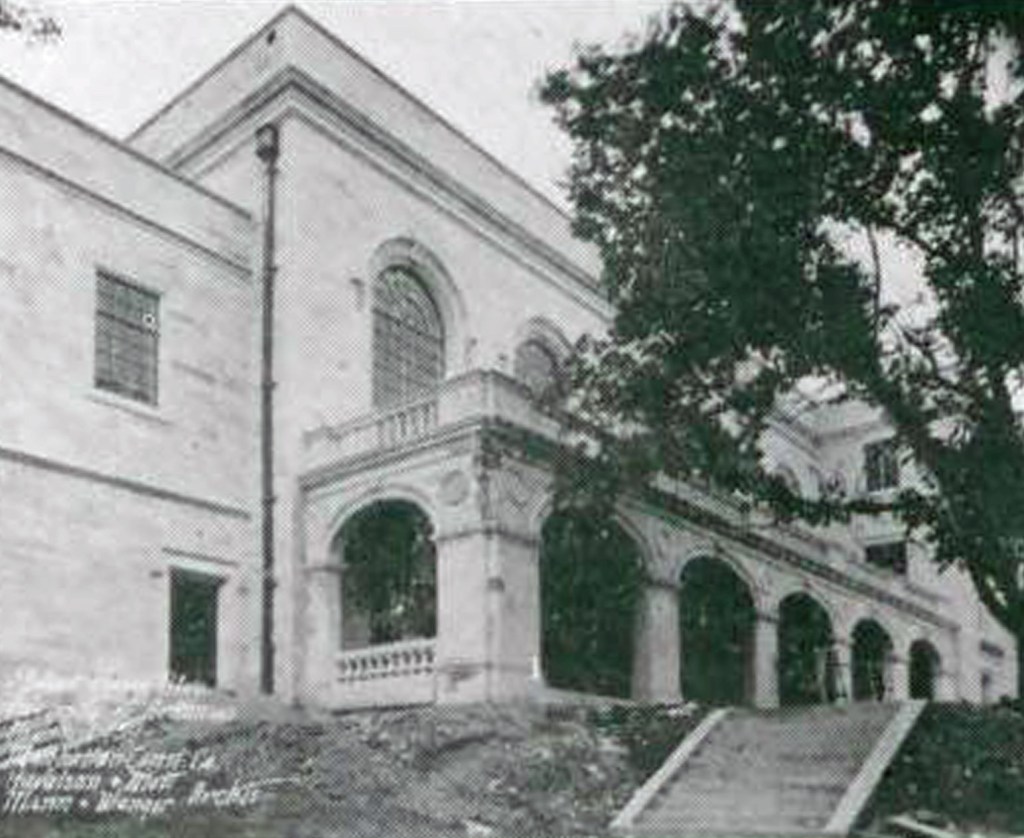 As described in the 1941 yearbook: “The basement floor is made up of the confectionery with a black and chromium soda fountain and cafeteria facilities, and the amusement rooms. Walking down the hall from the confectionery one can go into two rooms equipped with ping-pong tables, and one with large, lively snooker tables. Up the stairs to the main floor, and there one sees the front entrance, from which leads the ballroom and the lounge room. With a lofty ceiling support four huge glass and metal chandeliers and tall arched windows draped with yards and yards of flowing expensive cloth, the ballroom is truly a ‘dream.’ Over the especially designed band shell is a mural depicting all phases of student life at the University, and all around the floor are chairs for chaperones and those who care to sit the dance out. Overlooking the ballroom is a balcony for those who care to watch rather than dance. The chandeliers are all connected with one master switch which changes the lights in the room from red, blue, green, and orange back to natural lighting in a gradual fading process.