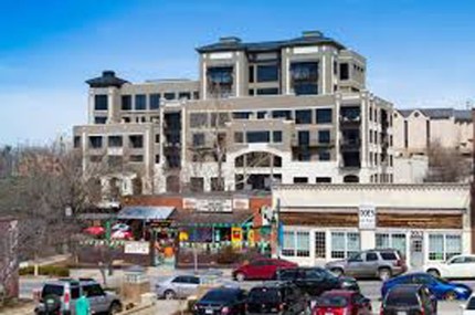 The Legacy building looms over the popular 400 block of Dickson Street.