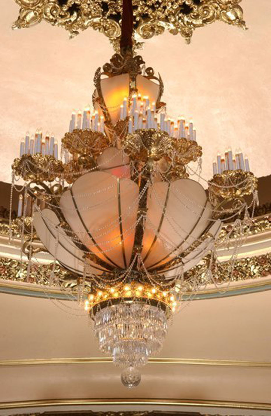 George and initially his brother Albert made such a success of this mining operation that they earned a million dollars a week. No wonder George could import African mahogany and commission a massive chandelier of Venetian glass, sparing no expense for a theater that would remind him of his summer home near Versailles. After Albert’s poor health forced his relocation to Colorado, George expanded his empire to build cattle ranches and finance local businesses.
