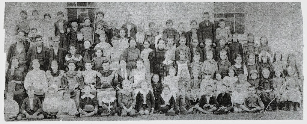 Earliest known photograph of West Fork school, circa 1894. Far left is teacher and his assistant.