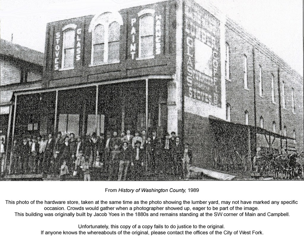 Jacob Yoes Hardware store, scene of the Graham murder. Presently, this century-old building houses the West Fork Oprey.