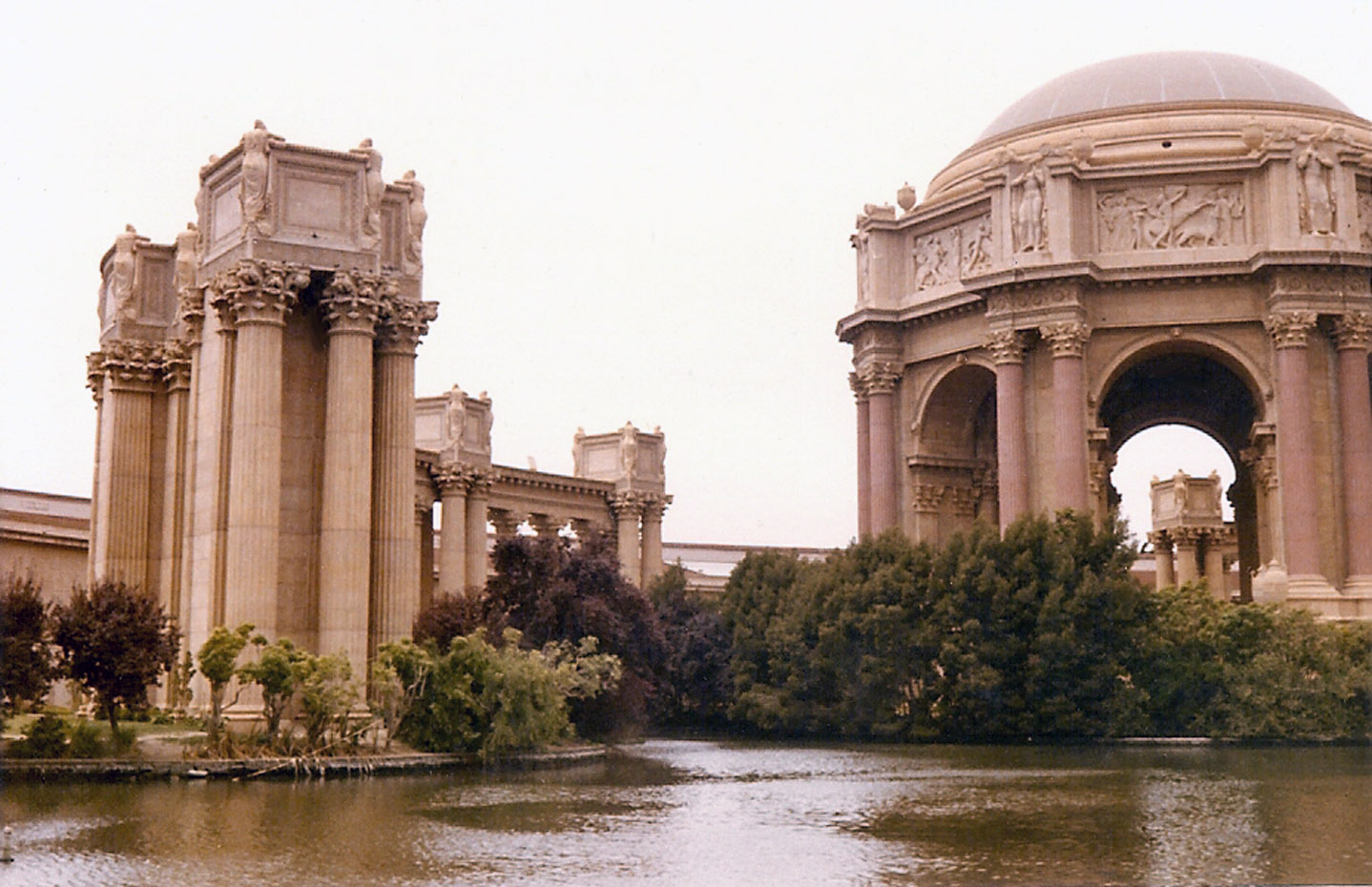 Disheveled and bone tired, we toured San Francisco, a drive-by effort to see the Presidio, Golden Gate bridge, and Fisherman’s Wharf. We walked through downtown, gawking up at tall buildings, dodging cable cars, and musing over oddities like the man playing bagpipes across the street from Woolworths. We wandered around the fabulous Palace of Fine Arts, a preserved portion of the original 1915 exhibit for the Panama-Pacific Exposition.