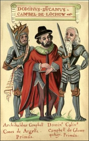 We now come to the most feasible ancestor of William’s lineage if we descend from Scottish nobility. As noted in the previous chapter, Duncan The Black was the son of Colin The Grey Campbell, 6th of Glenurchy and his wife Katherine Ruthven, and we’ll back up enough to focus on him before moving on.